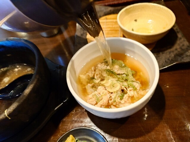 ◎江戸YA秘伝のだしに、はまぐりエキスが溶け出し驚くほど芳醇な旨味が!!〆の雑炊or麺がサイコー♪