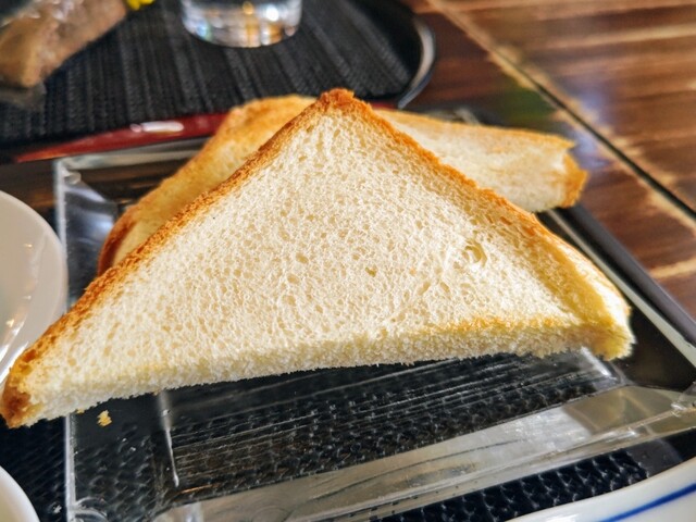 届いたモーニングはトーストの焼きが甘く、焼...