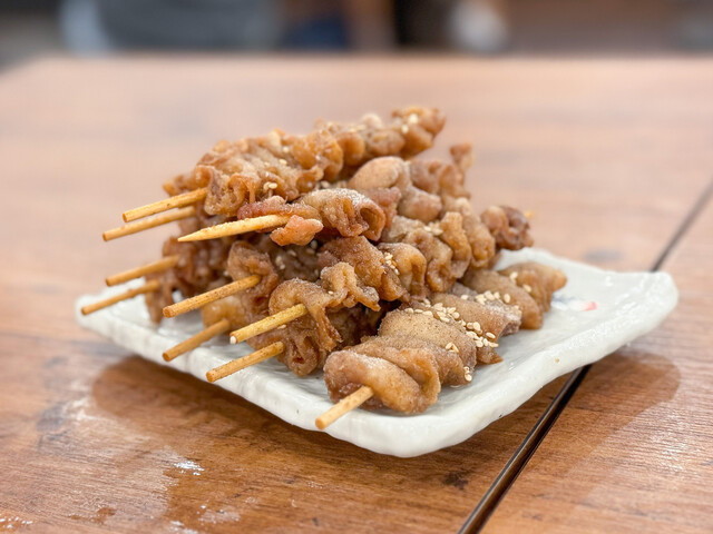 揚げ鶏皮串発祥の店【新時代】★名物『伝串』累計販売本数2億本!日本一のパリモチ鶏皮串