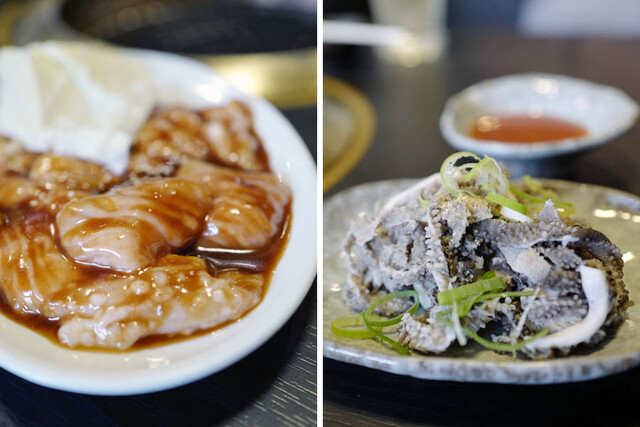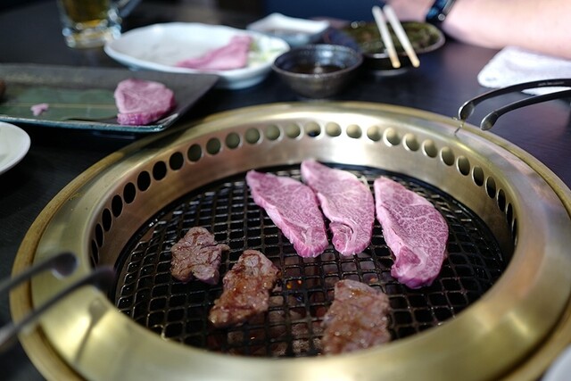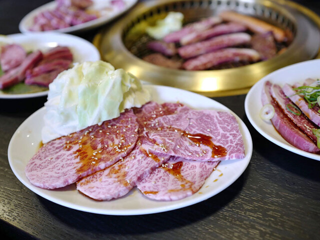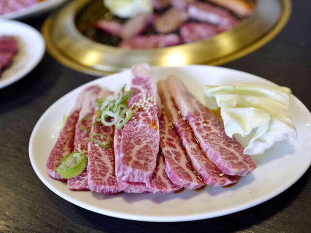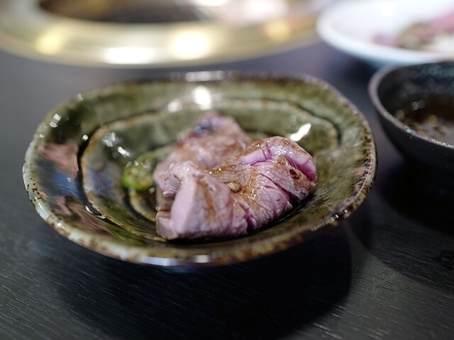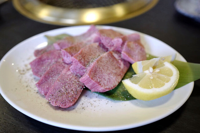 牛タン、ハラミ、赤身が次々やってきて、それらの見事な姿に写真を撮るのも忘れ...
