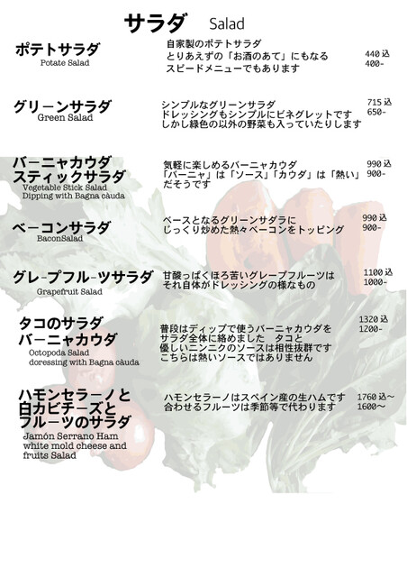 | ドリンク | ワインあり、カクテルあり、ワインにこだわる |