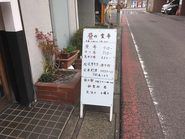 美濃太田駅から南へずずずいっと。駐車場は少し離れた所にありました。入口には可愛らしいフグの絵が。天カツ丼目当てでの訪問です。
