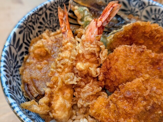 この日のランチは天丼とひれカツ丼のあわせ技をいただきます。