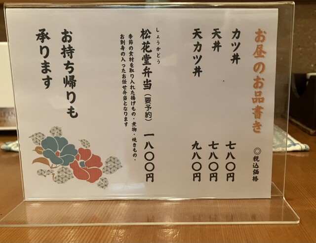 お昼のメニューは絞られていて、カツ丼、天丼、天カツ丼