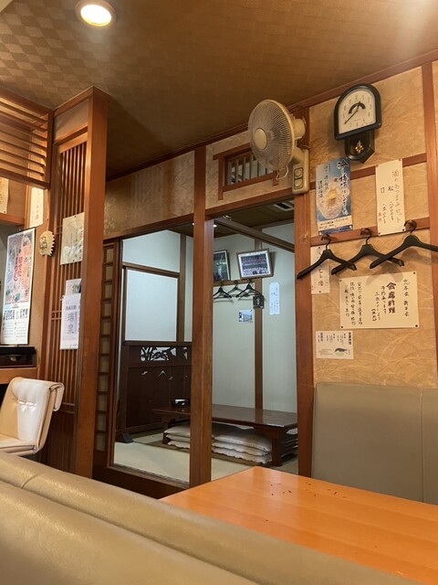 カウンター5席、6人掛テーブル席×2、奥には座敷があるようでした。