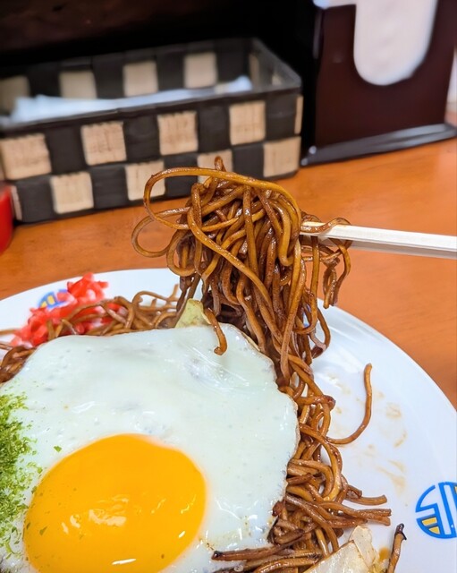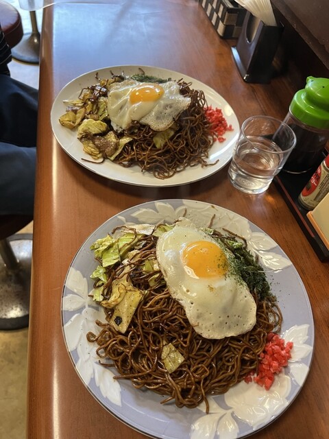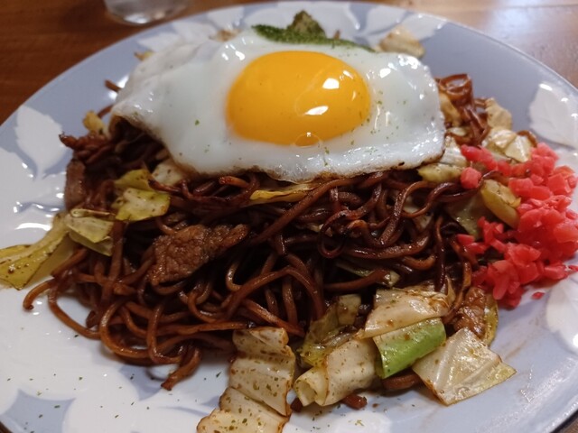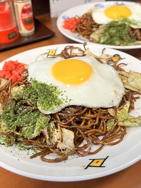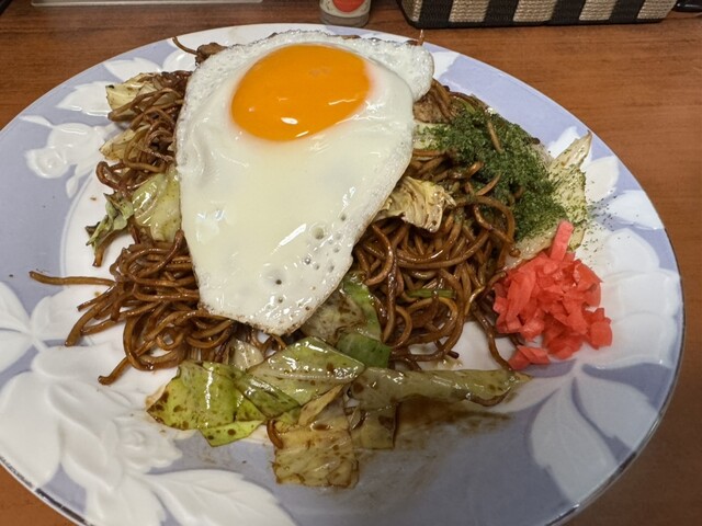いつもの肉玉焼きそばを注文。