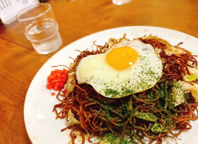 静かな路地にひっそりと佇むお店。近づくにつれて強まるいい匂いと、褪せた暖簾に書かれた「やきそば、おこの...