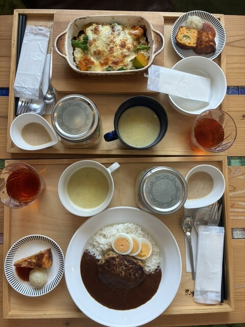 モーニングサービスは予約制の足湯付き個室にてOK(足氷・足冷水は夏季限定)ランチタイムは11時~14時迄カレー、パスタ、ドリア、ロコモコ丼から選択。植木鉢プリンセット、ふわふわパンケーキセット、カヌレとドリンクのセットもお勧め。当店のマスターはハウスビルダーでもあり、打楽器のカホン作家でもあり、長年飲食店を営んできた経歴をもつマルチキャラクター。駐車場から店内まで本物の手作りカフェを一度ご覧あれ