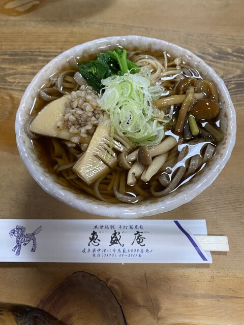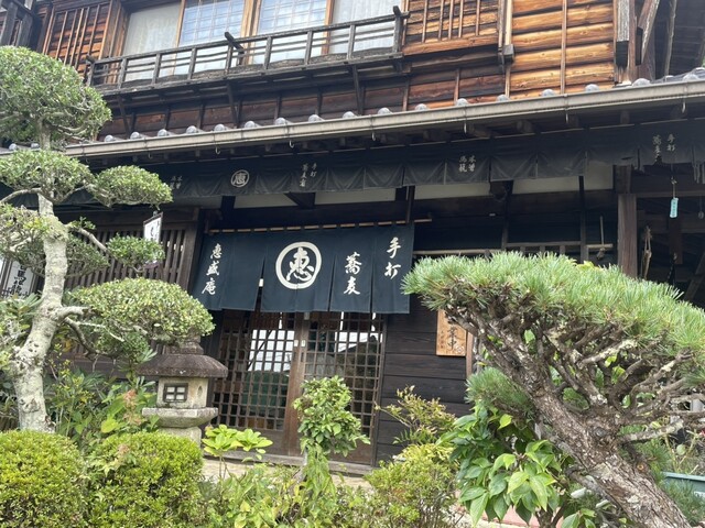 馬籠宿にあるお蕎麦の恵盛庵さんへ寄らせてもらいました!雰囲気ある店の佇まい。店内の素朴な感じ、まさに宿場町のお蕎麦屋さんでした。