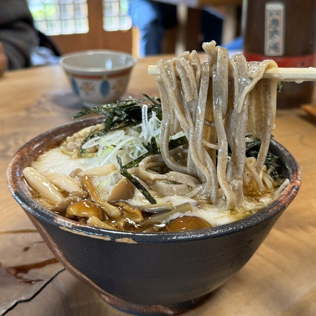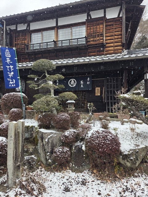 岐阜県中津川市にある中山道の歴史ある宿場町「馬籠」にあるお蕎麦屋さんです、週末のランチで利用してみました。店内はテーブルと掘りごたつ席あわせて30席ほどの席数、11時の開店10分前くらいに到着したとこ...