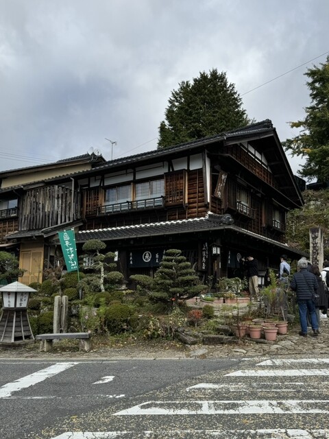 岐阜は馬籠宿、坂を一番奥まで上がったところにある手打ちそばの店です。