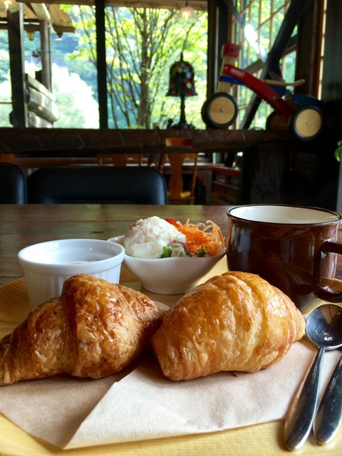 お好きな席へどうぞとの事でしたので風通しが良くて見晴らしの良いテラス席へ。陽射しの強い日でも屋根があって川沿いの風が通るのでとても涼しくて最高ですよ。