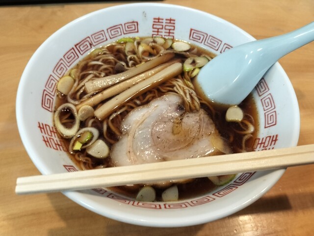 高山ラーメンを初めて試した。鶏、醤油、野菜でスープを煮込み、調味料と油を一緒に熱くしたものだそう。味わいは一体感があって良いが、少し塩味が強い。