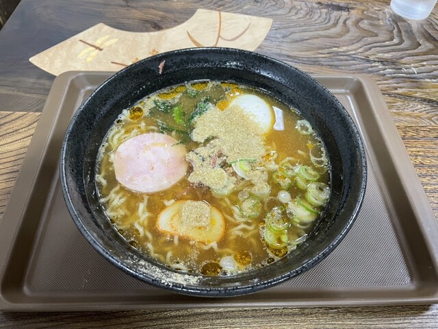メインは、白川周遊満喫ラーメンという汁無しラーメン。ホワイトロード開通記念に開発された、白川郷コシヒカリの米粉を使用した麺に豚骨風味で飛騨の山菜がたっぷり乗っています。汁無しラーメンなのであ、しっかり混ぜ混ぜして食べると程よい具合に胡麻のパンチが効いていて...