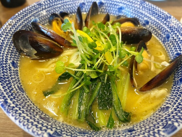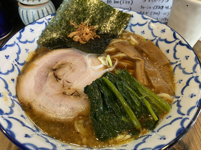 日曜日、12:30訪問。 平日この時間帯は混み合うので、休日は穴場の様子。 店の20mほど東に5台。 先客2名、後客4名。 カウンター、テーブル、小上がりのお座敷あり。 つけ麺よりもラーメンがオススメなお店。 ワンタンがお安く頂けるサービスは、 平日・土曜のみとのことで今日は断... 詳細を見る