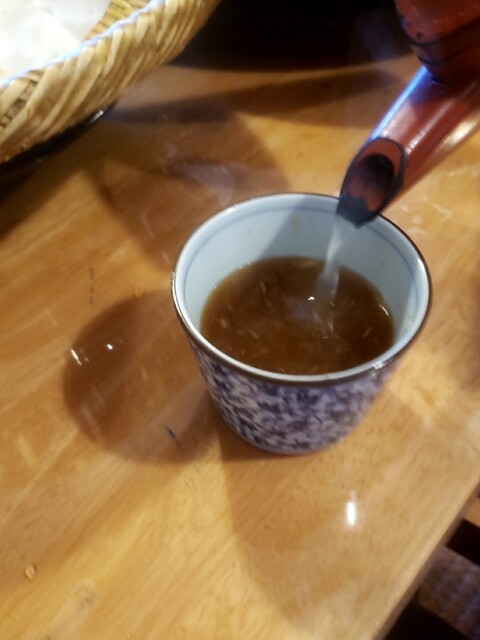 今回は手打ちそば(そば7合)と舞茸天ぷらを注文。