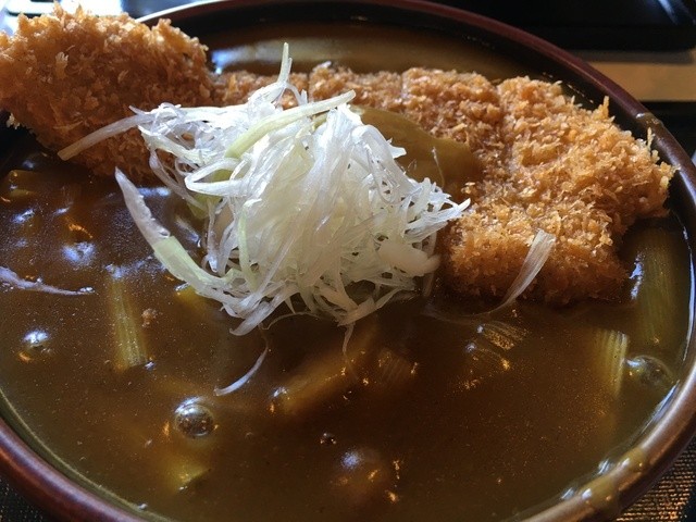 カツが一枚どんと載っているカレーうどん