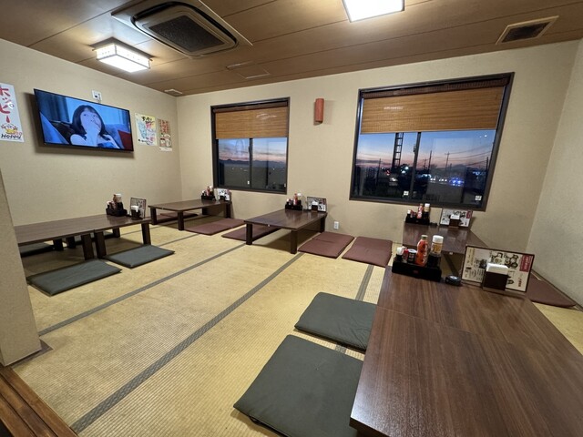 57席 (テーブル4席×2、テーブル6席、カウンターテーブル9席、座敷 4席×5、座敷8席、座敷6席) |