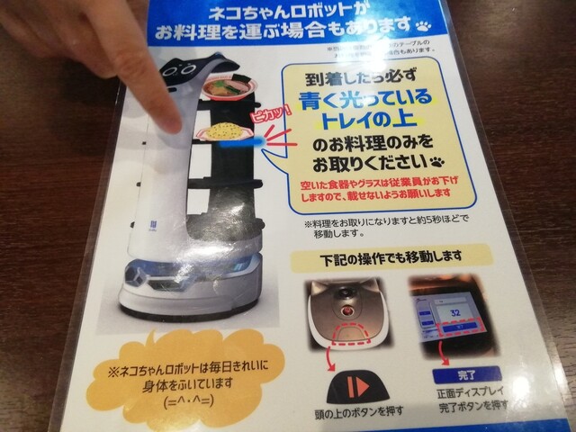 持ってくるのはすかいらーくチェーンでレギュラー化しつつある配膳のネコちゃんロボット。