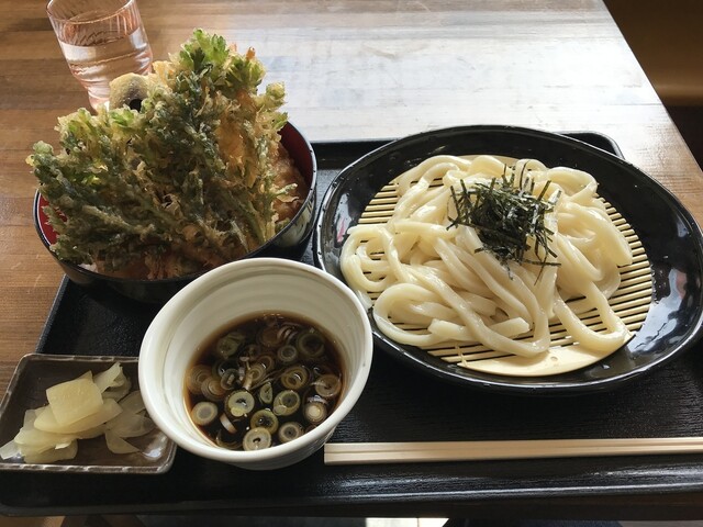 こちらのうどん屋さんかなりお気に入りで、ちょぴっと遠いけど(30キロくらい?)定期的にお邪魔させていただきます。 奥様は入り口の本日のオススメ天丼セット(1000円)をかけう... 詳細を見る