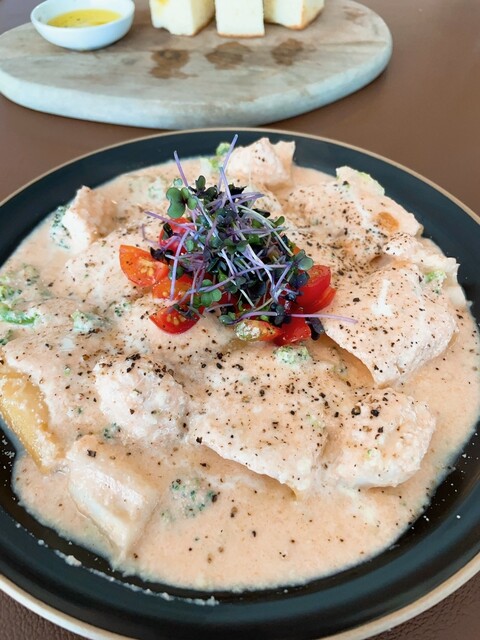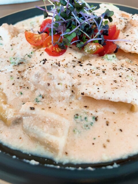 随分前に訪れ、 とても美味しかった記憶があり リピートしました。 カバーのパスタはわたしが食べました。 わたしは熱々が好きなので 冷めるのが早くてそれが少し残... 詳細を見る