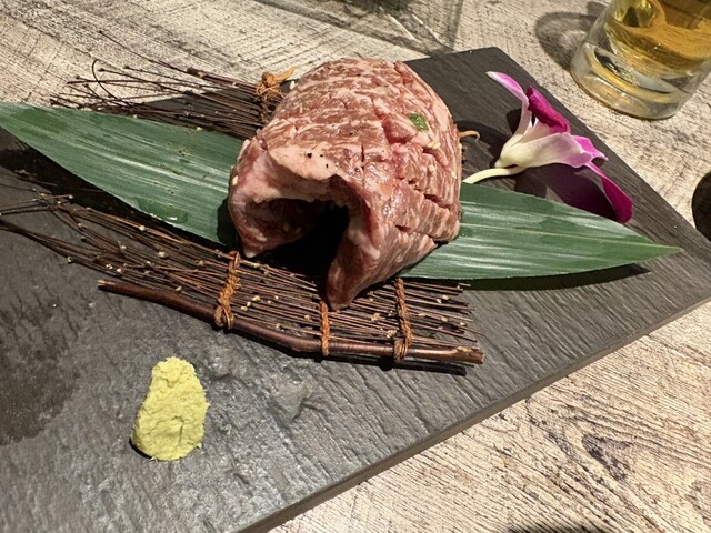 階段式に盛り付けられた「和牛の階段」は、税込み11,000円という価格に見合った、見た目も豪華な看板メニューです。とろけるような脂のサシが美しく、まさに写真映えする一品でした。