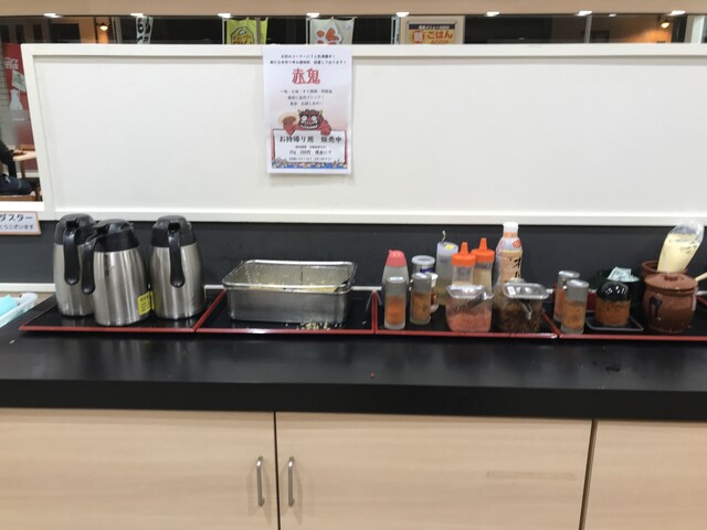 の食券を買い店員さんに渡し、入口にあったチラシの無料サービス券で唐揚げでもと店員さんに聞くと「次回から」と・・・ん⁉ 意味がわからん?