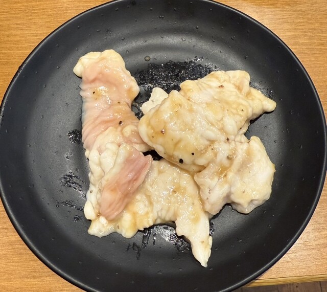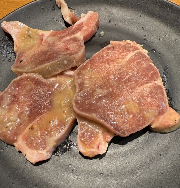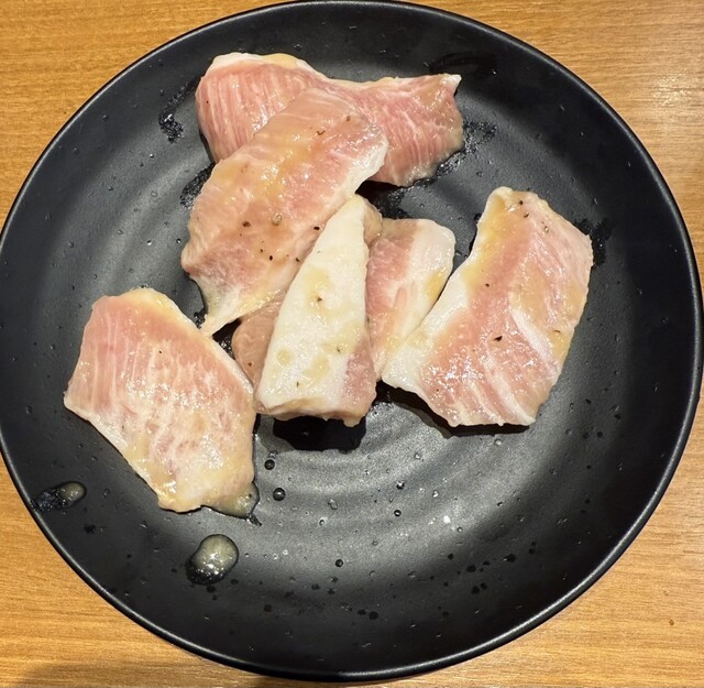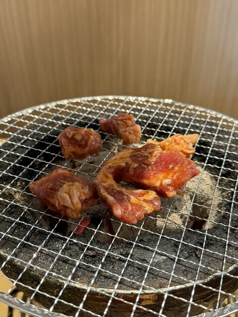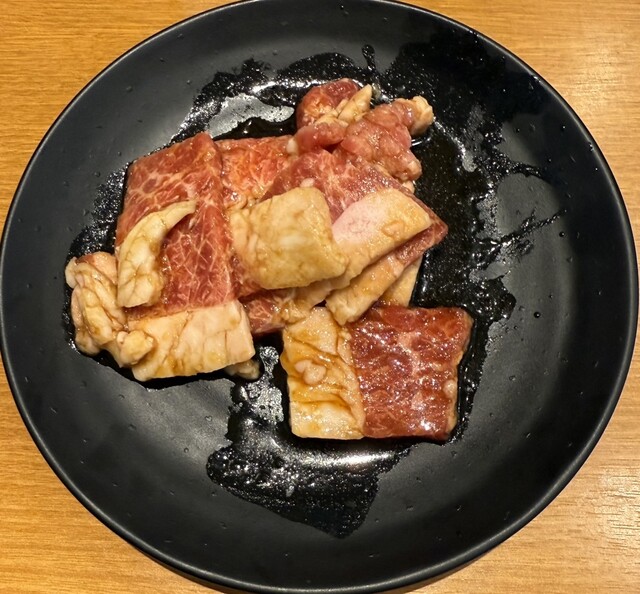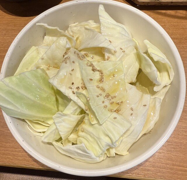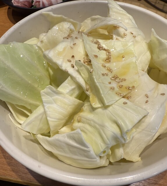 [塩だれキャベツ]、ボールで提供されかなりの量、その前にシーザーサラダも頼んでましたので様子見てからにすべきでした。お肉類も続々くる状態にも関わらず、火の入りが弱く、皿の山に…この状態でも、何とか捌き切りオール完食(デザートまで!)させました。お肉の味、あまり覚えてないですが笑、[中落ちカルビ][トロカルビ]あたりが柔らかくて美味しかったです。