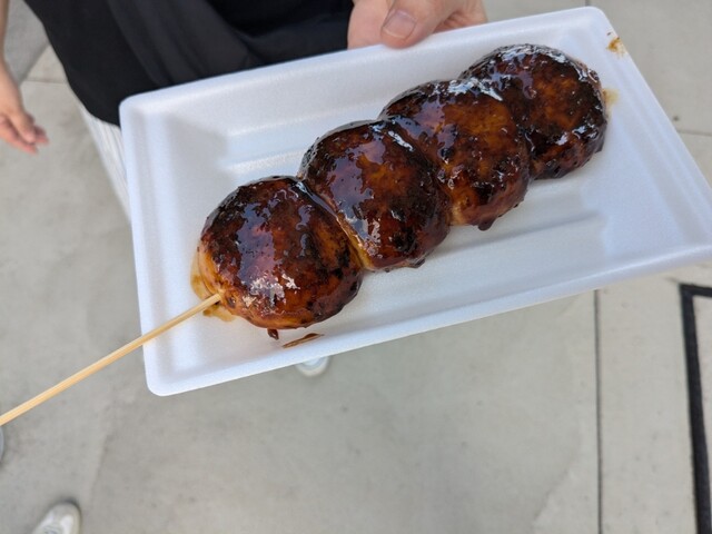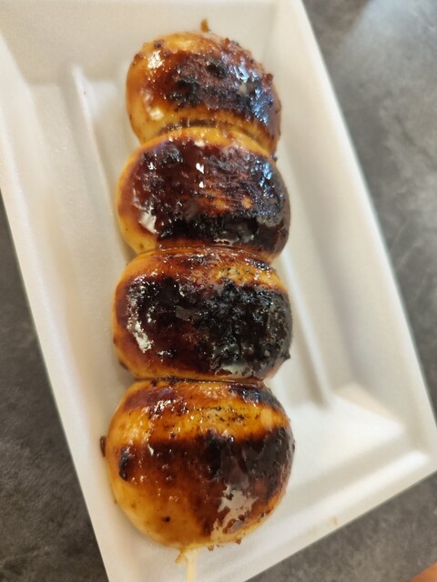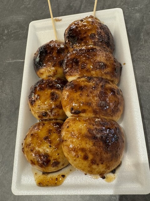 炎天下、食後のデザートにと「焼きまんじゅう」、一本?一串??を家族でシェアして食べました!