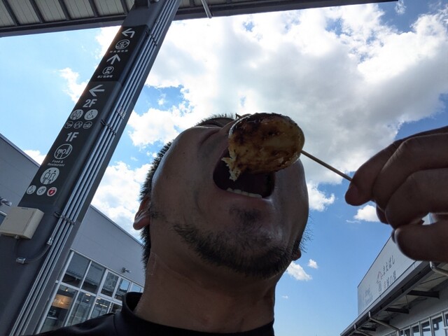 道の駅まえばし赤城にある焼きまんじゅう屋さん。餡子入りの焼きまんじゅうをいただきました。