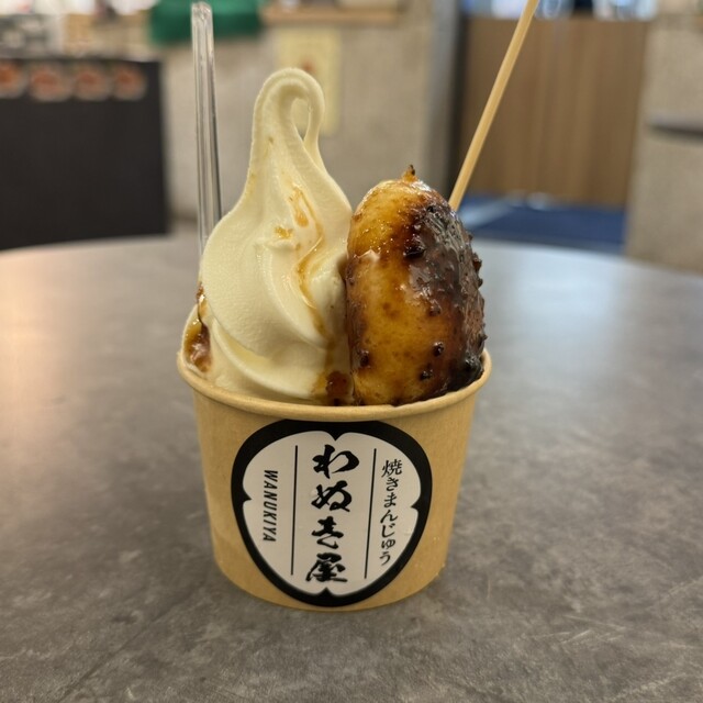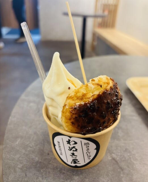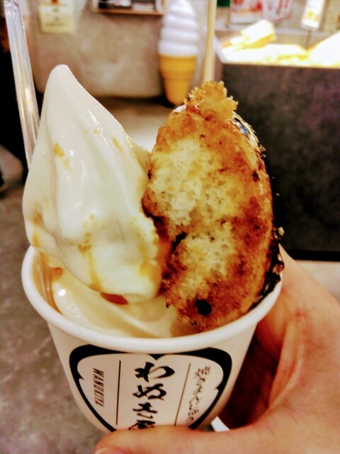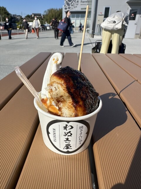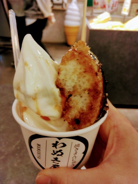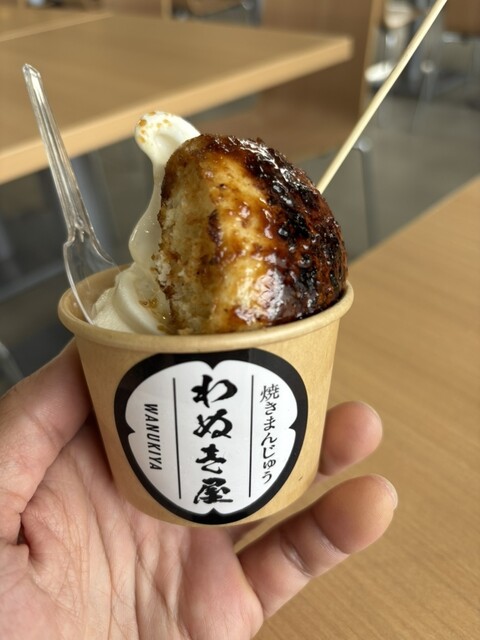 焼きまんじゅうの芳ばしい香りと醤油の味が、ソフトクリームに合って美味しかったです
