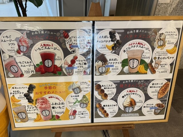 炙りチーズ焼きまんじゅう❤️焼きまんじゅうソフト❤️前橋産皮ごとバナナスムージー❤️りんご飴ミニ❤️