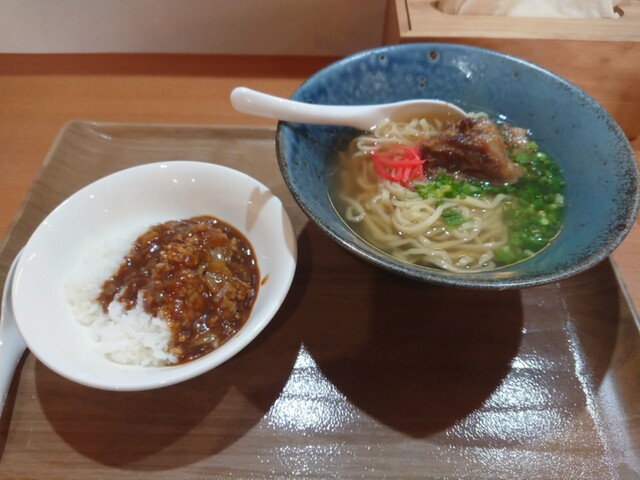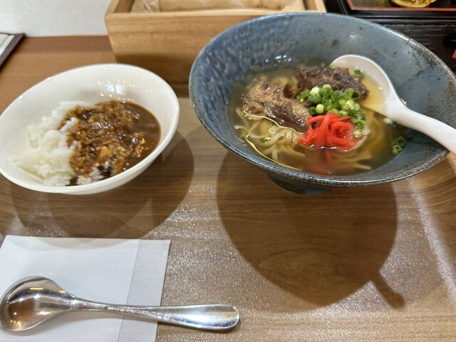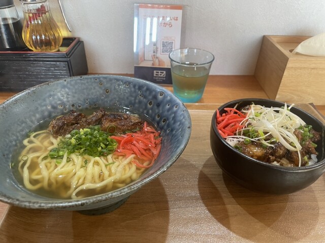 席に付き、注文はスマホからお願いしますと、説明を受け、ソーキそばと、炙りソーキ丼をポチッと注文、...