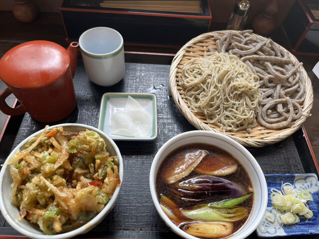十割そばと粗挽きの田舎蕎麦を主に提供されています。