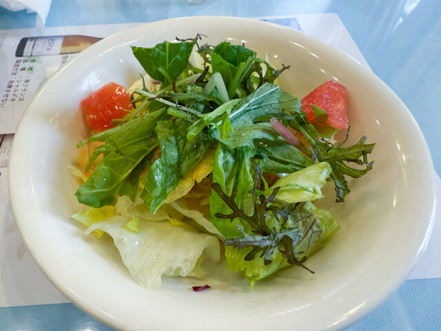 人気店なので少し待ってから席へ。意外と広い。サラダとドリンクのセットでスパゲティは看板メニューのシャンゴ風。麺の量がグラム表示されているのだが、これ湯で前の状態だと思うので、不用意に...