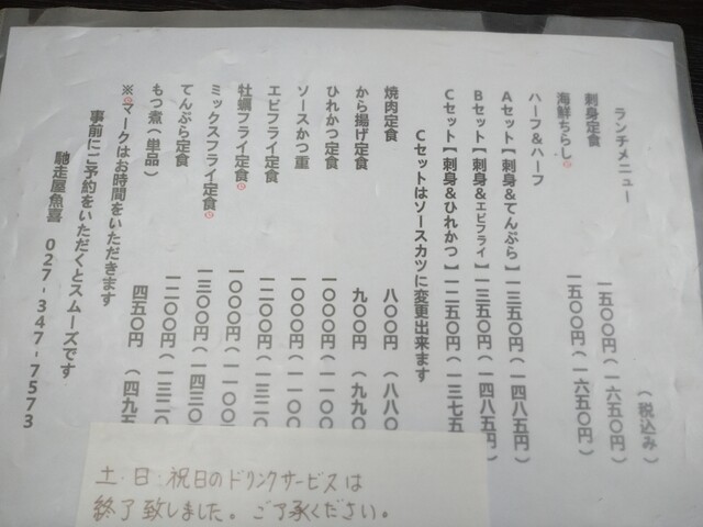 | ドリンク | 日本酒あり、焼酎あり、ワインあり |
