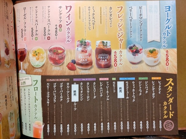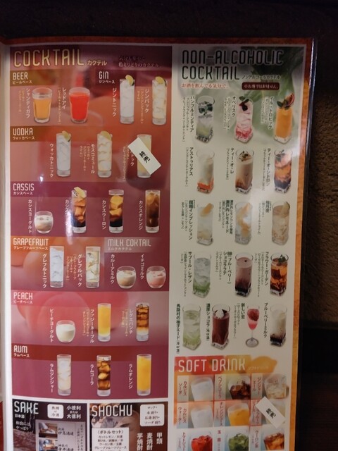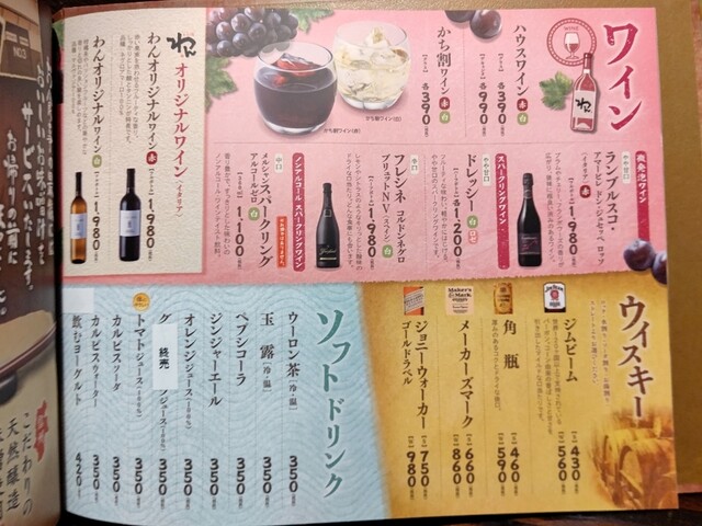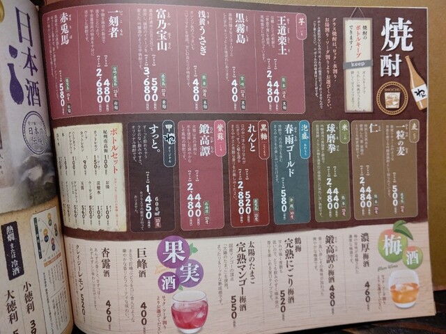 | ドリンク | 日本酒あり、焼酎あり、ワインあり、カクテルあり |