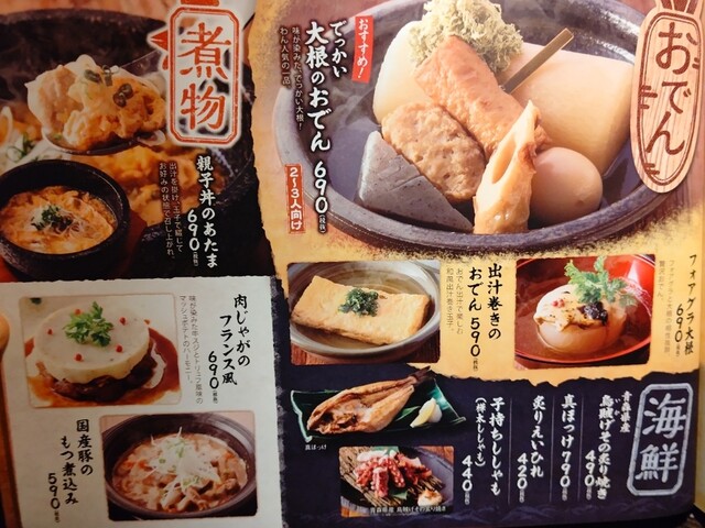 | ジャンル | 居酒屋、日本料理、海鮮 |