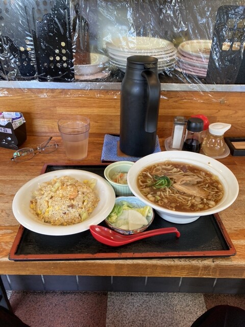 下小鳥町の住宅街にあるこちらの中華屋さんがオススメと聞いたので早速ランチに訪問しました。海鮮チャーハンがオススメとの事だったのでBランチ(海鮮チャーハンと醤油ラーメン) 800円を注文し提供された料理はちょっと濃いめのスープに太面の組み合わせの醤油ラーメンと普通に一人前の量があり大きな海老がゴロゴロ入っている海鮮チャーハンでこの金額でこの内容はコスパのパフォーマンス満点で味も充分においしい町中華屋...