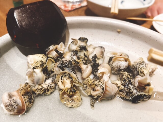 私達はカウンター席に着席。おでんはつぶ貝400円を除き一律250円。