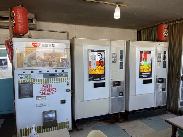 比較的新しめのカップヌードル自販機はまるで大御所の露払い役のように2基設置されていて、まさに盤石の布陣(笑)