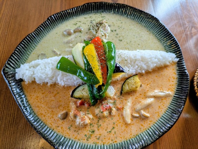 グリーンカレーとトマトチーズの合盛りカレー(ジャスミンライス付き)ご飯Large200gをいただきました! 高崎にグリーンカレーの美味しい店があると以前から聞いていて来店。グ... 詳細を見る