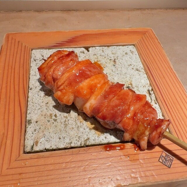 鮮度抜群の京赤地鶏と宮崎地鶏を高知県の炭職人近藤氏の備長炭で一串一串気持ちを込めます。それはまるで炭火と会話をするように地鶏の部位に合わせた焼き加減を見極め、絶妙なタイミングで出される焼鳥は人の心もつかむおいしさ。