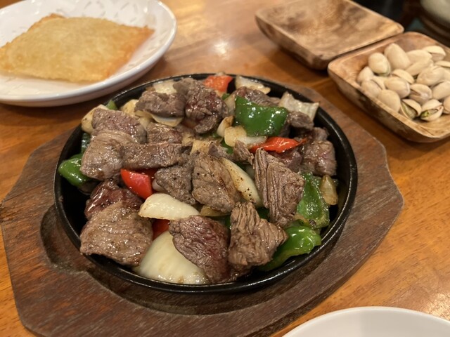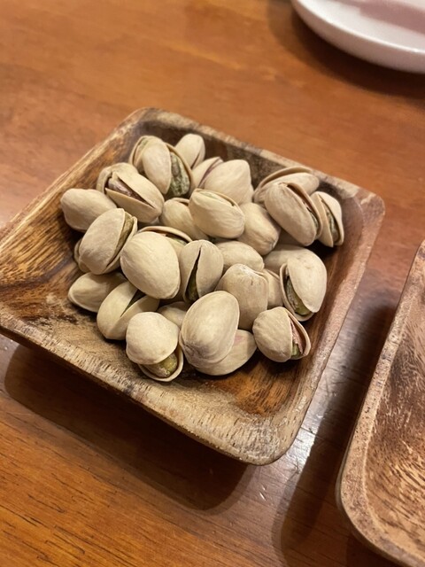 高崎にあるブラジルグリルが食べられるお店に初訪問。お通しのピスタチオをつまみながら、グリルシュラスコの盛り合わせを待つ。