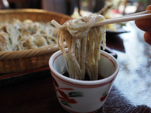 朝からインドアゴルフ、献血と活動してからのつゆ下蕎麦を食べに此方のお店に初訪問となります。11時半を過ぎた時間に店舗前の駐車場に車輌を停めてから店内で記帳を済ませて外で待機する事にしました。大きな鯉に餌を与えながら待ちます。景観の綺麗なお店となります。店内の待機椅子に移動してから再度、待機します。玄関入ってから左右に部屋が有り左側のテーブル席に案内されました。オーダーはそば七合...
