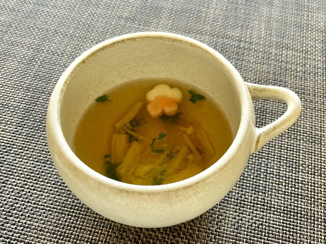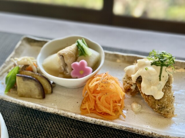 13時15分に入店。予約しておらずたまたま入れたようで、事前に予約してお店に行くことをおすすめする。桜と紅葉のシーズンは、ランチ予約があっという間に埋まってしまうらしい。我々のグル...