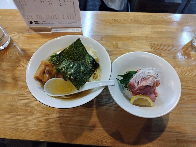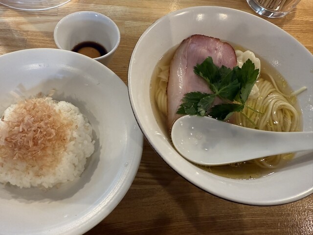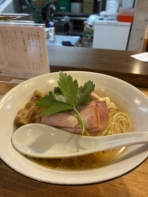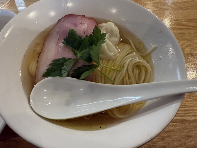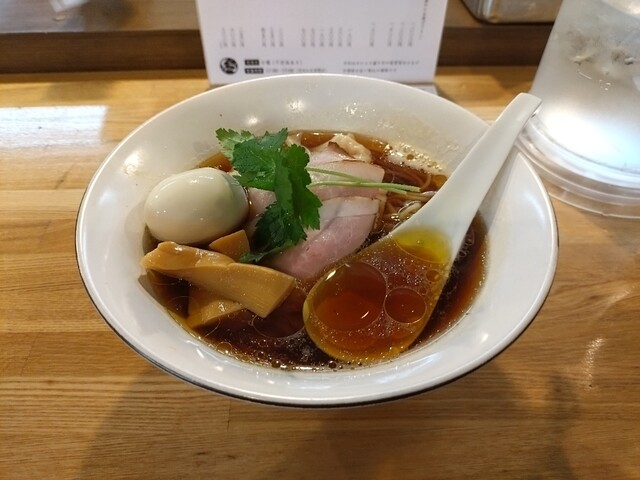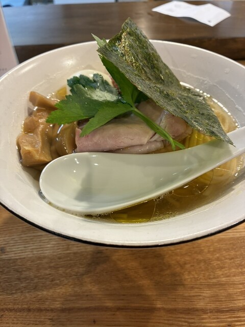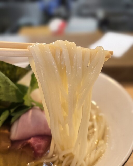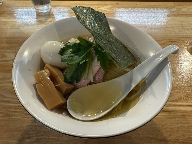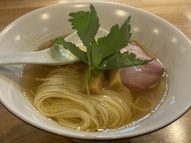 スープの出汁は煮干し、カツオ節主体で丸鶏を使用、タレは白醤油。上品かつ深い旨みで優しい味わい