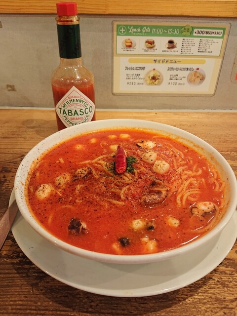 自分は、赤唐辛子とにんにくのトマトソース生麵普通(¥1156) +Sセット(¥320)をいただきました。 家内は、海老のトマトクリーム生麵普通(¥1156) +Aセット(¥2... 詳細を見る