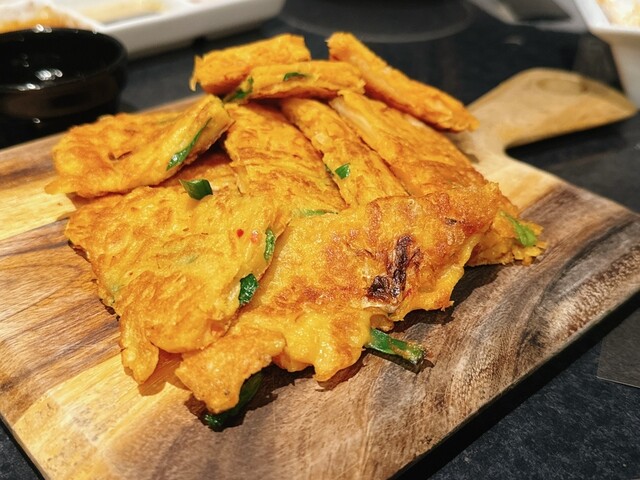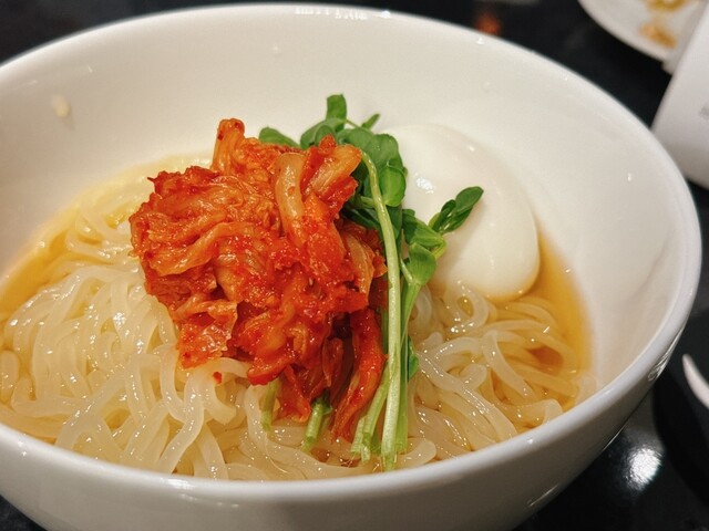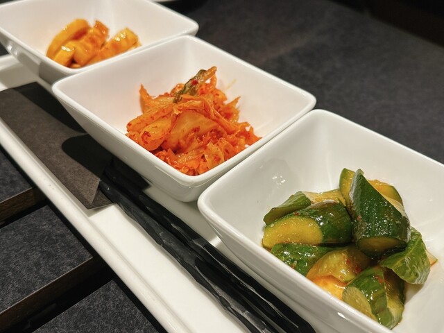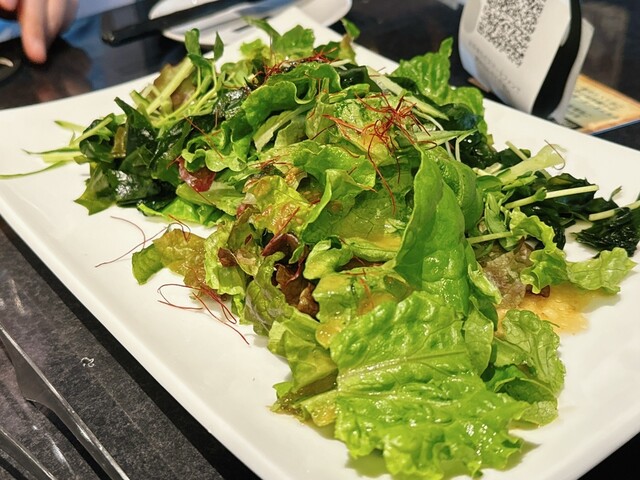 まずは、キムチやナムルの盛り合わせ。チョレギサラダをいただきました。