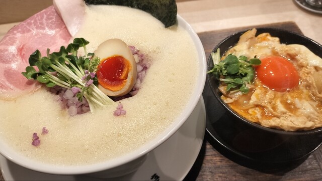 本日は高崎駅から徒歩圏内にある鶏白湯の泡で有名なたまきさんを訪問しました。本日は鶏白湯泡ramen醤油+炙り肉親子丼(小)のセット(訪問時1,950円)を注文しました。かなりの贅沢... 詳細を見る